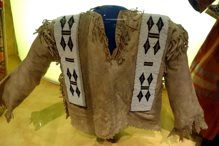 | Keywords: Boy's shirt, Siksika, early 1900s, buckskin, glass beads - Glenbow Museum - DSC01012.JPG en Exhibit in the Glenbow Museum 130 9th Ave S E Calgary Alberta Canada This work is old enough so that it is in the public domain Photography was permitted in the museum without restriction 2013-09-21 12 42 39 own Daderot cc-zero Aboriginal peoples clothing in the Glenbow Museum Uploaded with UploadWizard Siksika clothing | ||||