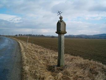 Keywords: Boží muka Maříž.jpg cs Boží muka na cestě z Maříže do Slavonic - v pozadí slavonická věž own Miloš Fiala 2008 ano 130px Column shrines in Jindřichův Hradec District Maříž