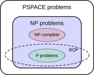 | Keywords: BQP complexity class diagram.svg This svg shows the suspected shape of the BQP of problem space the range of problems easily solved by quantum computers Note that this is not proven; it has not been proved that P NP or P PSPACE and if either of these are equal the shape of BQP would be different Diagram based on information found in Michael Nielsen and Isaac Chuang 2000 <i>Quantum Computation and Quantum Information</i> Cambridge Cambridge University Press ISBN 0-521-63503-9 Based on Image Complexity classes svg by user Booyabazooka Also public domain Drawn by User Mike1024 Created with Inkscape 2007-02-15 User Mike1024 Computational complexity theory Computer science venn diagrams |