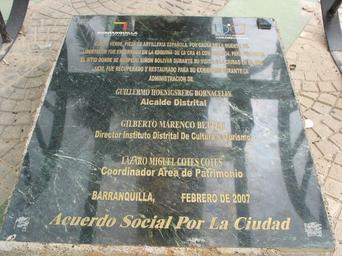 Keywords: Bquilla - 7 oct 2007 007.jpg Placa del cañón verde Own 2007-10-07 Jdvillalobos Plaques in Barranquilla Paseo de Bolívar Barranquilla
