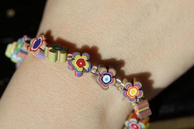 Keywords: bracelet colorful flowers floral color children arm child bracelet polymer clay