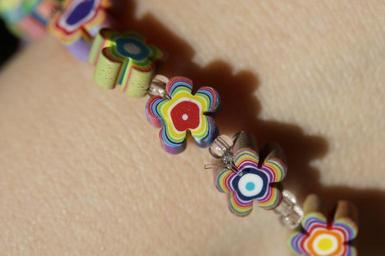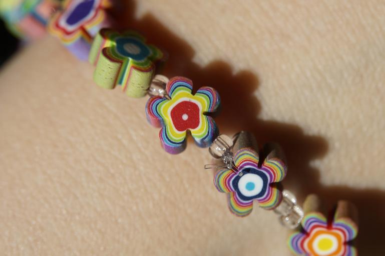 Keywords: bracelet colorful flowers floral color children arm child bracelet polymer clay