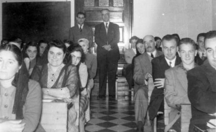 | Keywords: argentina conference evangelism people groupshot blackandwhite monochrome black and white Caption: Group attending the Victorious Life Conference at the Bragado Bible School May 12-15, 1955. Standing in the rear are Perfecto Abat and Evangelist Juan Iztueta, the speaker. Citation: Mennonite Board of Missions. Photographs. Argentina, 1942-1963. IV-10-7.2 Box 1 folder 35, photo #3. Mennonite Church USA Archives - Goshen. Goshen, Indiana Caption: Group attending the Victorious Life Conference at the Bragado Bible School May 12-15, 1955. Standing in the rear are Perfecto Abat and Evangelist Juan Iztueta, the speaker. Citation: Mennonite Board of Missions. Photographs. Argentina, 1942-1963. IV-10-7.2 Box 1 folder 35, photo #3. Mennonite Church USA Archives - Goshen. Goshen, Indiana |