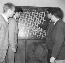 | Keywords: argentina evangelism bible school bibleschool blackandwhite monochrome indoor black and white Caption: 1957. Four Bible School students plan their strategy for personal house to house visitation and distribution of religious literature in the city of Alberti, a very Catholic town 15 miles east of Bragado. Every week they go to Alberti Friday and Saturday afternoons. Citation: Mennonite Board of Missions. Photographs. Argentina, 1942-1963. IV-10-7.2 Box 1 folder 35, photo #10. Mennonite Church USA Archives - Goshen. Goshen, Indiana Caption: 1957. Four Bible School students plan their strategy for personal house to house visitation and distribution of religious literature in the city of Alberti, a very Catholic town 15 miles east of Bragado. Every week they go to Alberti Friday and Saturday afternoons. Citation: Mennonite Board of Missions. Photographs. Argentina, 1942-1963. IV-10-7.2 Box 1 folder 35, photo #10. Mennonite Church USA Archives - Goshen. Goshen, Indiana |