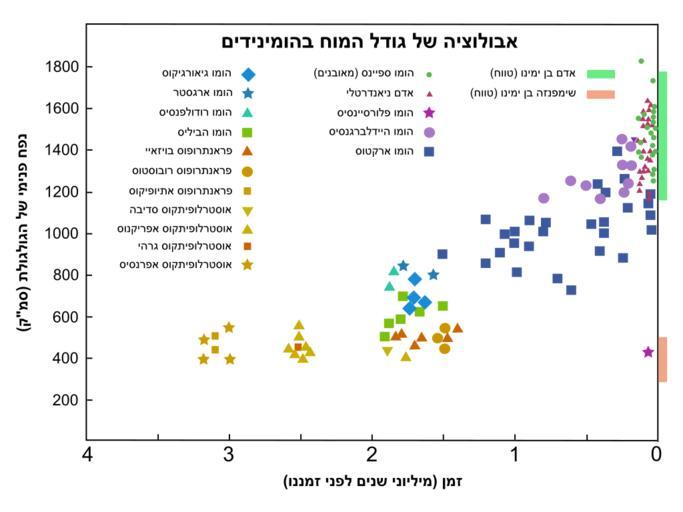 Keywords: Brain Size Evolution Heb 01.svg en Evolution of Brain Size in Hominids Hebrew own H sapiens 2011-01-30 Cc-zero Brain Diagrams in Hebrew