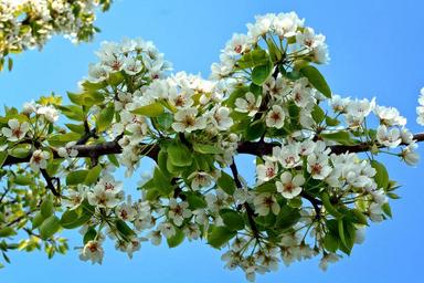 Keywords: branch blossom bloom spring white bloom garden nature apple blossom blue sky