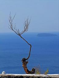 Keywords: branch plant wood sea view wide nature rest island greece santorini idyllic