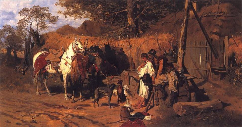 | Keywords: Brandt Kozak i dziewczyna.jpg Artwork en Cossack and a girl at the well pl Kozak i dziewczyna przy studni oil canvas cm 51 99 Kielce Institution National Museum Kielce http //www pinakoteka zascianek pl/Brandt/Images/Kozak_i_dziewczyna jpg www pinakoteka zascianek pl 1875 Creator Józef Szermentowski PD-old-100 Other versions 19th-century genre paintings Józef Brandt Paintings in the National Museum in Kielce Zaporozhian Cossacks in art Szermentowski Józef Ukrainian Cossacks in art 19th-century paintings of horses Paintings of Cossacks |