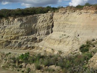 | Keywords: BrandungSteigerberg.JPG Ansicht der Sandgrube Alzey-Formation Unter-Oligozän die das Brandungskliff am Steigerberg enthält Das eigentliche fossile Kliff ist nicht sichtbar Mainzer Becken Rheinhessen en View at sand pit Alzey Formation Early Oligocene in which the fossil sea cliff at Steigerberg hill occurs The fossil sea cliff proper is not visible Mainz Basin Rhineland-Palatinate Germany La sablière de Eckelshausen Formation de Alzey Oligocène inférieur La falaise fossile «Falaise à Steigerberg» n'est pas visible own Dextwin 2011-08-07 Cc-zero Brandungskliff am Steigerberg Outcrops in Rhineland-Palatinate Sand mines |