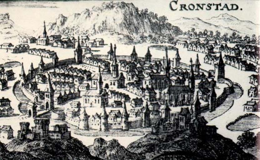 Keywords: Brasov 1666.jpg XVIIth century fictional engraving of Braşov a rough copy after Johann Tröster Old and new Dacia 1666 century 17 PD-old Old engravings of Brașov 1667