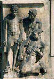 | Keywords: Bratislava Bezručova BanP1.jpg sk Práca I trojfigurálny monumentálny reliéf od Pavla Bána na portáli budovy vpravo na Bezručovej ulici č 5 v Bratislave 1936 own Pavol Ban sculptor - cc-by-3 0<br>Peter Zelizňák photo 8 apríla 2009 618/2003 Z z ZÁKON zo 4 decembra 2003 o autorskom práve Slovenskej republiky § 27 Použitie diela umiestneného na verejnom priestranstve cc-by-sa-3 0 GFDL FoP-Slovakia Bezručova 5 Bratislava Reliefs in Bratislava Pavol Ban Images by Peter Zeliznak Reliefs of men in Slovakia |