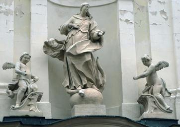 | Keywords: Bratislava Františkánske námestie Františkánsky kostol.jpg sk Súsošie Immaculaty nad portálom do kostola františkánov polovica 18 storočia pravdepodobne dielo J Sartoryho own Peter Zelizňák 2 apríla 2009 Own work all rights released Public domain Sandstone sculptures in Bratislava Kostol Zvestovania Pána Statues of Virgin Mary in Slovakia Statues of standing women in Slovakia | ||||