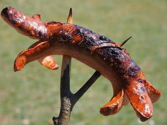 Keywords: bratwurst burnt black burned grill sausage red sausage grill sizzle fry heat eat meat barbecue grilling fire embers delicious