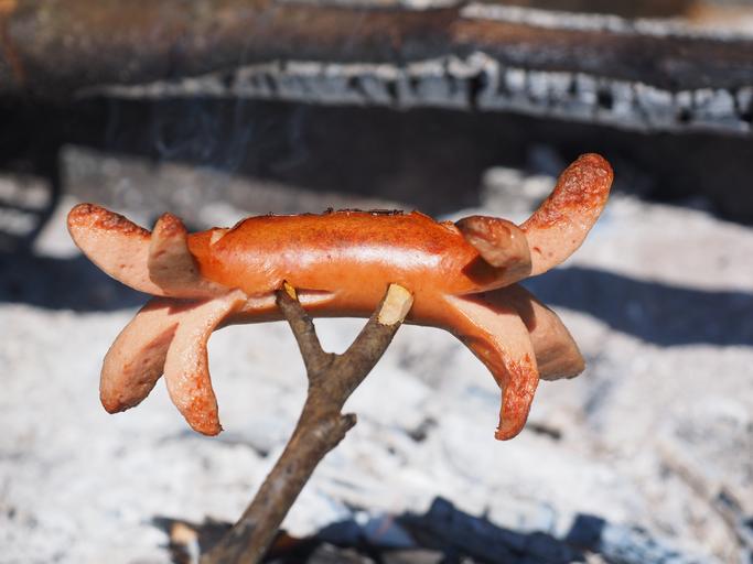 Keywords: bratwurst grill sausage red sausage grill sizzle fry heat eat meat barbecue grilling fire embers delicious