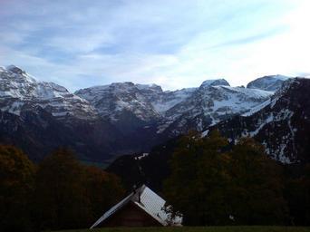 Keywords: Braunwald.jpg en View of Glarus Alps from Braunwald own Zacharie Grossen 05 10 2008 Braunwald Buildings and structures in Switzerland in snow