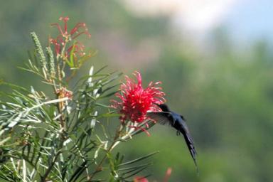 | Keywords: Brazilista beija flor e grevillea.jpg en Grevillea attracts hummingbirds such as this Swallow-tailed Hummingbird Eupetomena macroura Pitinga Arraiail d' Ajuda Porto Seguro - Brazil I took the photo personally John K Sweeney John K Sweeney 2009-02-01 Eupetomena macroura in flight Trochilidae feeding on flowers Unidentified Grevillea Birds at Grevillea flowers |