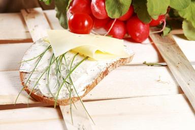 Keywords: bread and butter cheese chives breakfast diet eat wooden box box radishes healthy spread bread food remove nutrition calories vegetarian
