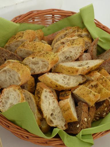 Keywords: breadbasket bread napkin eat food baked goods breakfast basket bread slices pastries delicious crispy nutrition white bread frisch abendbrot