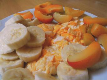Keywords: breakfast banana eggs nectarine food diet tasty fruit nutrition meal morning eating eat raw nature delicious healthy