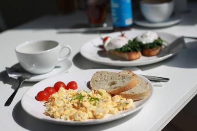 Keywords: breakfast cafe we're going canteen or in front of egg scrambled eggs poached eggs eggs benedict