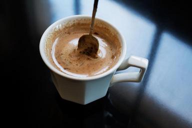 Keywords: breakfast coffee color cup of coffee indoor milk reflexion spoon window
