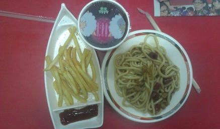 | Keywords: Breakfast sold in taiwan.jpg en breakfast sold in taiwan left french fries right Kung Pao chicken noodles Mid black tea 2013-05-01 07 50 23 own K1234567890y 25 109766666667 121 5191 cc-zero Uploaded with UploadWizard French fries in Taiwan Black tea Kung Pao chicken Noodle dishes of Taiwan Breakfast in Taiwan |
