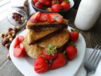 Keywords: breakfast strawberry chocolate hazelnut pancakes summer