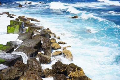 Keywords: breakwater wave sea ocean water spray inject stones block stone blocks