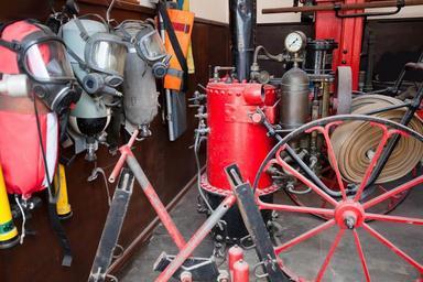 Keywords: breathing masks water pump hand pump hose fire fire hose delete use old antique red