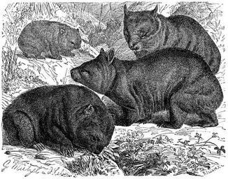 Keywords: Brehms Tierleben - Wombat 1884.jpg de Abbildung Wombat aus Brehms Thierleben von 1829 bis 1884 Brehms Thierleben 1829-1884 Alfred Edmund Brehm 1829-1884 Mitte 19 Jhd PD-old Unidentified Vombatidae