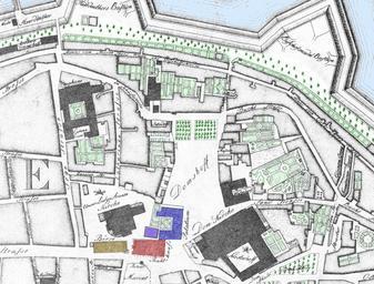 | Keywords: Bremen 1796 Murtfeld Domshof Wall.jpg adapted cut of the citymap of Bremen printed in 1796 red Rathaus townhall blue Palatium episcopal palace that time residence of an administrator of the Hanoveran enclave inside the city ochre Börse stock exchange Almost all gardens in the old city on the right bank were situated in the episcopal/Hanoveran part collotype of the original map available in Staatsarchiv Bremen 1796 adaption 2015-01-07 de Carl Ludwig Murtfeldt File Bremen 1796 Rathaus Palatium Gärten png larger cut File Bremen 1796 Murtfeldt Rathaus Palatium png larger cut less adapted File Bremen 1796 Murtfeldt jpg entire map 18th-century maps of Germany Parts of old maps of Bremen History of Town hall of Bremen Mitte Bremen Bremen in the 1790s Plans maps of Bremen Cathedral PD-old-100 |