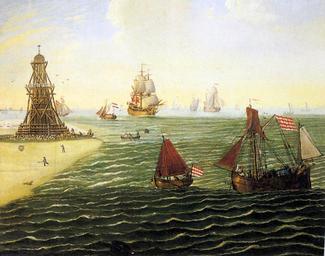 | Keywords: Bremer Bake und Tonnenleger auf der Außenweser - 1790.jpg en Oil painting at the Haus Schütting in Bremen Germany showing the daymark Bremer Bake on the sandbank Hohe Weg at the Weser estuary and two buoy tenders form the city of Bremen de Ölgemälde im Haus Schütting aus dem Jahr 1790 das die Bremer Bake auf der Sandbank Hohe Weg in der Außenweser und zwei bremische Tonnenleger zeigt Hermann Gutmann Haus Seefahrt in Bremen und seine Schaffermahlzeit Johann Heinrich Döll Verlag Bremen 1999 author 1790 PD-old-100 Weser near Mellum 18th-century sailing ships in paintings Oil paintings of watercraft 1790 paintings Daymarks in Germany Water transport infrastructure in Germany Oil paintings of landscapes Sandbanks Schütting 1790 in Bremen Buoy tenders Weser in art 1790s landscape paintings |