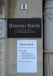 Keywords: BremerBank-Detail-2.jpg Bremer Bank historischer Teil Domshof 8 Neues Firmenschild own 2010-09 Jürgen Howaldt File BremerBank-Detail-2a jpg 53 4 33 N 8 48 34 5 E type landmark_region DE-HB_scale 1000_dim 50 Bremer Bank building in Bremen
