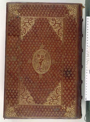 | Keywords: Breuiarium Romanum - Lower cover (c46l2).jpg Style Centre and cornerpiece Semis background of small tools Religious miscellaneous; Caption Lower cover; Colour Red; Edge Unspecified exhibition history Decorative Technique Tooled in gold; Cover Material Goatskin includes morocco turkey etc M M Foot has identified this binder as Claude Picques See Marie Pierre Lafitte Reliures royales Paris 2001; Lafitte Fabienne Le Bars Reliures royales de la Renaissance Paris 1999 c 1588 Paris bound by the Malenfant's binder M Foot The Henry Davis Gift vol I Appendix IV p 167-169 p 169 n 33 Au semé and centre and cornerpiece The centrepiece was common Biblioteca Nazionale Braidense Milano Arte delHistory of bookbinding as a mirror of society p 196 n 81; Incunables et merveilles de la bibliothèque d'Amiens p 95 on L'office de la vierge Marie à l'usage de l'Eglise catholique 1586; La collection Dutuit p 25-26 n 46 on Histoire de Baarlam et de Josaphat Roy des Indes Paris Guill Chaudiere 1578; La reliure Du 6e siècle à nos jours p 12 n 76; A Ledieu Les reliures artistiques et armoriées p 45-46 pl X; Patrimoine des bibliothèques de France Un guide des régions volume 7 p 204 Bibliothèque de la Socièté des lettres Sciences et arts de l'Aveyron on Heures de nostre dame a l'usage de Paris Paris Guillaume de la Noue 1577 even adopted on silver decorated bindings Librairie Sourget Chartres Manuscrits enluminés et livres précieux Catalogue XXV n 13 on text Jean van den Campen Paraphrase C'est-à-dire claire et briefve interprétation sur les Psalms de David Lyon Étienne Dolet 1542 too object history Text 1588; Paris; Henri III King of France 1551-1589 object type Cc-zero place of creation Binding France place of discovery Unspecified British Library image http //www bl uk/catalogues/bookbindings/LargeImage aspx RecordId 020-000006604 ImageId ImageId 42907 Copyright BL Breuiarium Romanum Uploaded with GWToolset Breuiarium Romanum - Lower cover c46l2 http //www webarchive org uk/bldatasets/bindings/4051_4 jpg Bookbinding 16th-century bookbinding British Library Bookbindings |