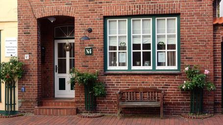 Keywords: brick house window door bench entrance house historical architecture germany old building