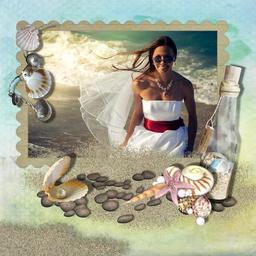 Keywords: bride beach wedding dress white frame wedding dress sea ocean girl happy summer outdoors woman romance romantic beach wedding smile marriage photo album tropical sand wedding ceremony shell glass