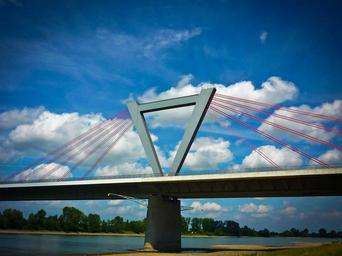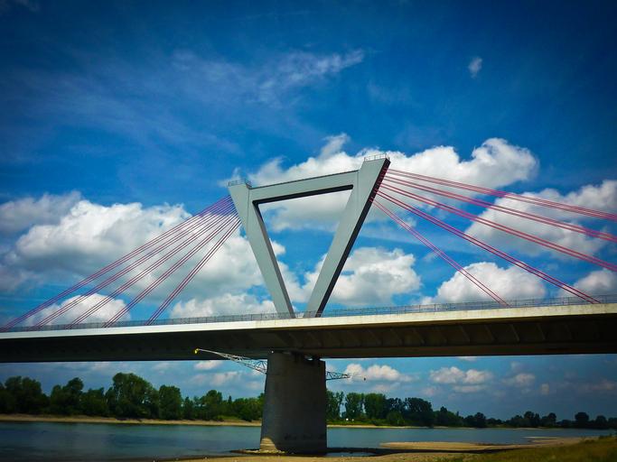 Keywords: bridge architecture suspension bridge water transition rhine düsseldorf construction