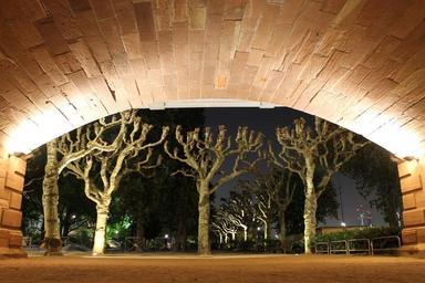 Keywords: bridge of the bridge main frankfurt frankfurt am main germany building below passage hell night trees human homeless enlightened light at the end of the tunnel tunnel light lighting enlightenment walk mood