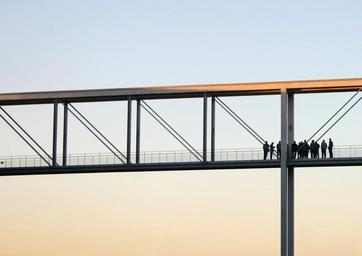 Keywords: bridge connection water transport traffic arch bank pillar orange beautiful atmospheric group human communication meeting back light filigree support blue