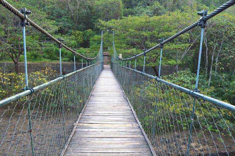 Keywords: bridge hanging wooden bridge timber bridge bridge over water park nature green forest wooden bridge adventure