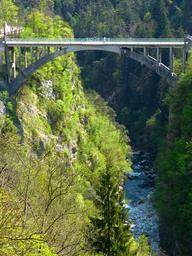 Keywords: bridge high dangerous gorge abyss forest nature water river flow web pillar arch rock