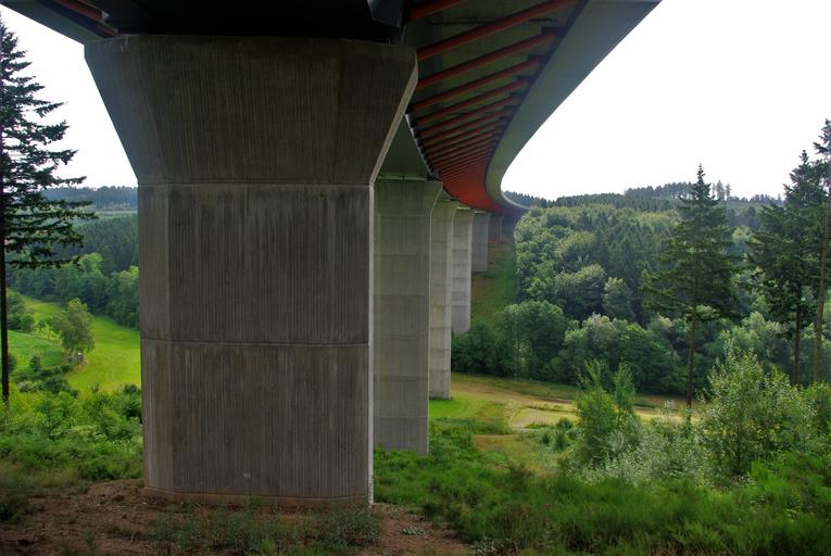 Keywords: bridge highway traffic road highway bridge germany architecture vehicles landscape view speed drive roadway modern road network concrete pillar ground columnar