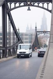Keywords: bridge metal rivet steel structure building steel bridge metal rods arch construction technology iron road traffic site construction workers spotlight fog ulm münster