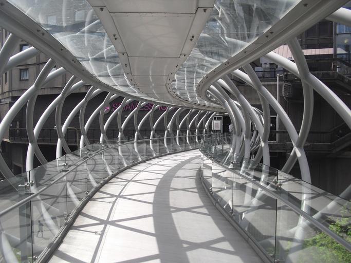 Keywords: bridge pedestrian modern glass steel passage building architecture