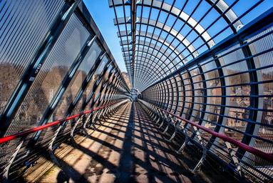 Keywords: bridge prospect depth metal blue red shadow architecture namur light and shade