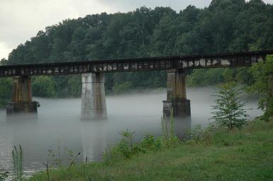 Keywords: bridge railroad trestle river tennessee fog mountains