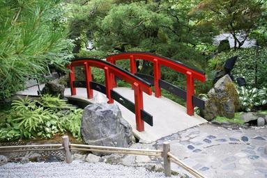 Keywords: bridge red botanical garden butchart gardens garden japanese garden railing gardens