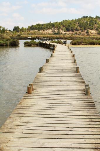 Keywords: bridge salins wooden bridge stilt sea peyriac france path atypical hiking passage sea water