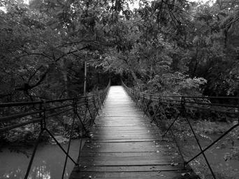 Keywords: bridge swinging wood steel wooden footbridge water landscape cables tranquil