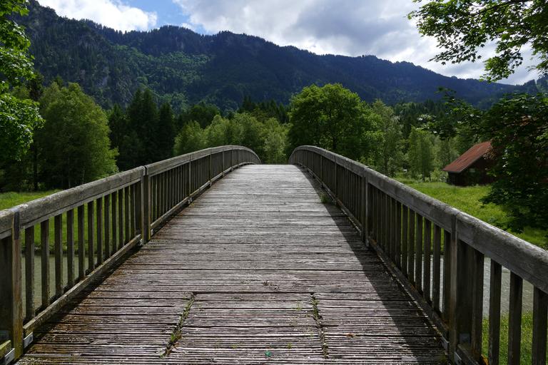 Keywords: bridge web boardwalk mountain alpine nature away water river landscape idyllic romantic trail tree meadow idyll hike mood walk hiking